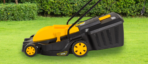 Травосборник увеличен до 45 литров, это позволяет реже останавливать агрегат для его высвобождения. Корпус электрогазонокосилки также выполнен из прочного и легкого пластика, установлен на раму с колесами, что упрощает передвижение устройства по земле.