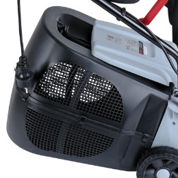 Электрический двигатель, в отличие от бензинового, прост в обслуживании и подготовке к запуску. Катушка со шнуром питания расположена на рукоятке и помещена в защитный пластиковый кожух. Работа на электрогазонокосилке не ограничена временными рамками, как на аккумуляторных моделях.