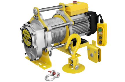 Период включения составляет 20%. Установить лебедку можно на вертикальную или горизонтальную поверхность. Лебедка имеет дополнительный режим увеличенной мощности, предназначенный для подъема тяжелых грузов (зеленая кнопка на пульте управления), во избежание повышенного износа узлов лебедки, данный режим рекомендуется использовать только в случаях выполнения работ, при которых производительности стандартного режима недостаточно.