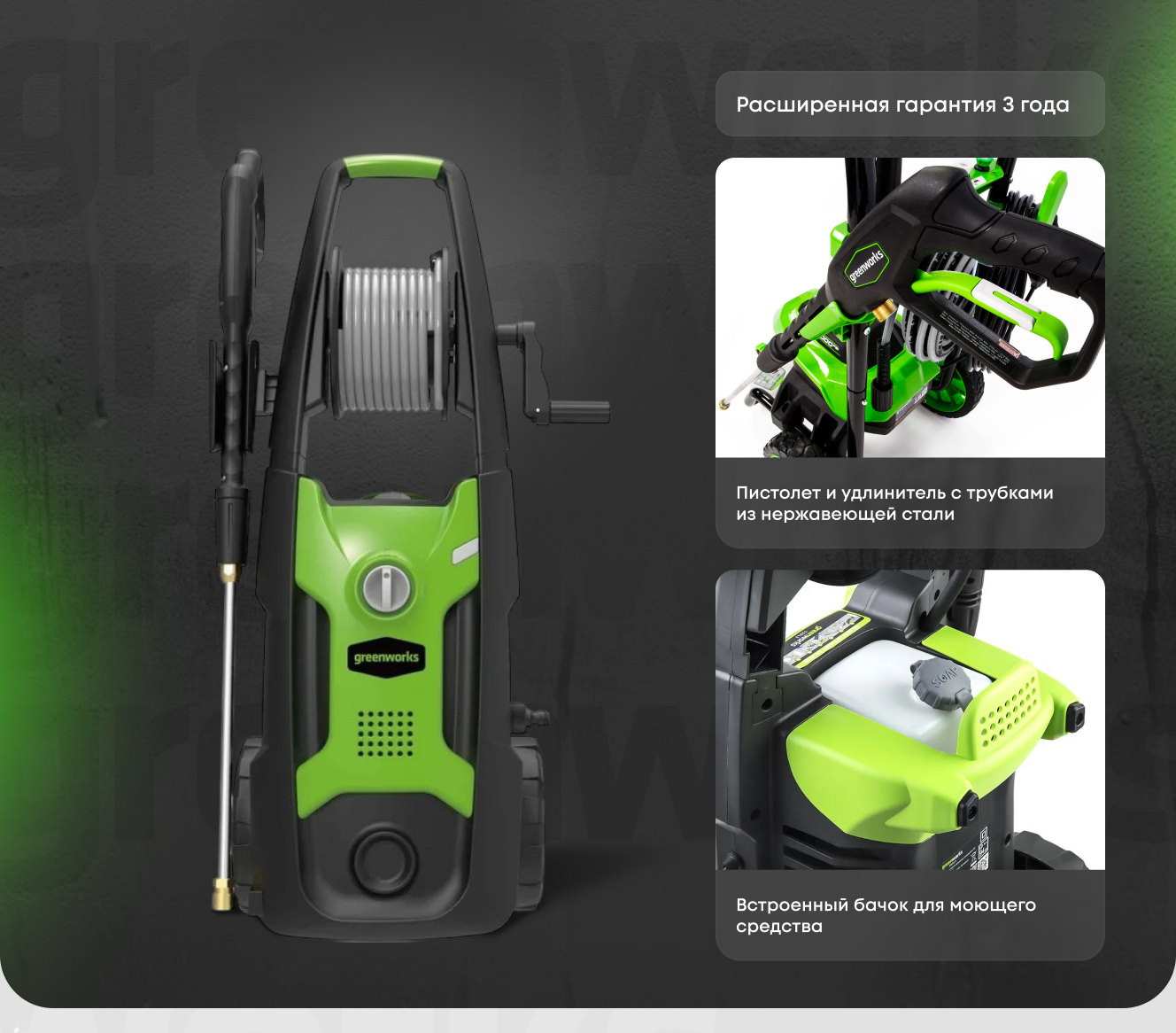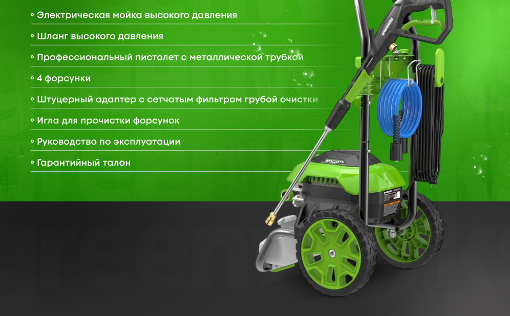 Электрическая мойка высокого давления Greenworks 2000 Вт, 140 бар 5106607