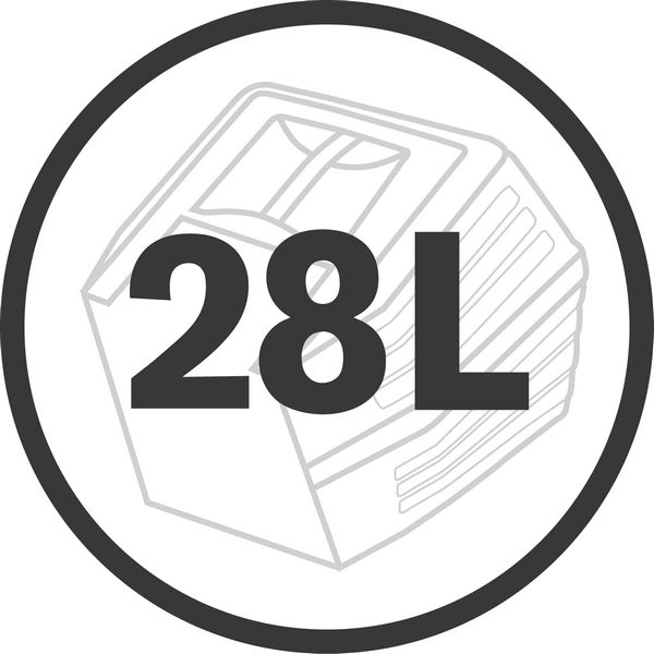 Длительный цикл работы Вместительный травосборник объемом 28 литров увеличивает продолжительность работы до следующего выброса травы. |