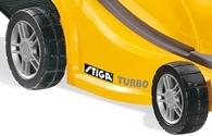 Мобильность Большие колеса обеспечивают комфортное передвижение и высокую проходимость электрической несамоходной газонокосилки Stiga TURBO 41 EL 294410661/ST9. |