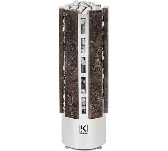 Электрокаменка Karina Forta 15 Амфиболитвыполнена в напольном варианте и обладает цилиндрической формой дополненной плитами из натурального камня Амфиболита. Напряжение питания - 380В. Данная модель имеет 6 тэнов, расположенных в виде треугольника. В центре внизу расположен бак для воды емкостью 5л, который является парогенератором. Выше парогенератора имеется емкость под мелкие камни или нержавеющие шары объемом 4.7л, вмещающая 10 кг мелкого камня, называемая закрытой каменкой с воронкой для подачи воды и получения мелкодисперсного пара. Электрическая печь Karina Forta 15 Амфиболитподойдет для любителей как финской сауны, так и русской бани.