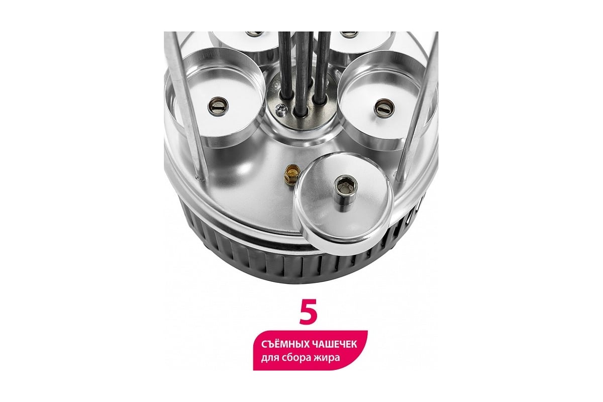 - Функция автоматического вращения шампуров для равномерного и быстрого приготовления продуктов.