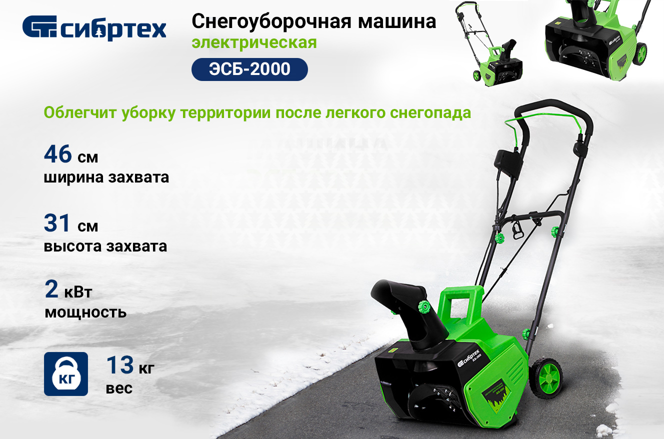 Электрическая снегоуборочная машина СИБРТЕХ ЭСБ-2000 97620