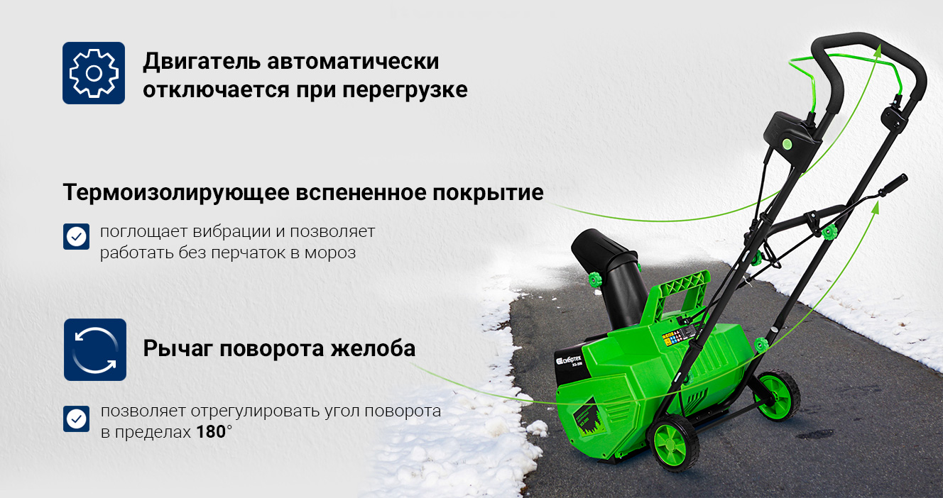 - Обрезиненный шнек - бережная очистка декоративных поверхностей;