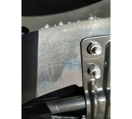 У меня за зиму 2021 потрескались внизу резинки на шнеке. Т.к. в ближайшем строительном магазине такую резину я не нашел то взял ленту оставшуюся от отделки дома (использовалась для поддержи кабелей) и наколхозил защиту нижней рабочей кромки у резинок (на 2-х фото). На 3-м фото показано что защита приняла на себя удар об железку ворот.