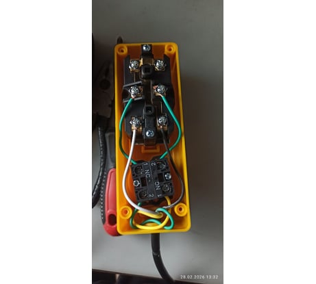 Подшипник на блоке полиспаста Подклинивает. Качество покраска внутри плохое, есть следы коррозии. "Крючек " Без обозначений по грузоподъёмности. Короткий провод управления и питания. Крепёжные скобы плохо прилегают к корпусу, пришлось немного подогнуть. Болты крепления на редукторе 3 шт. Не закручены, сорвана резьба. Крыльчатка охлаждения пластиковая.