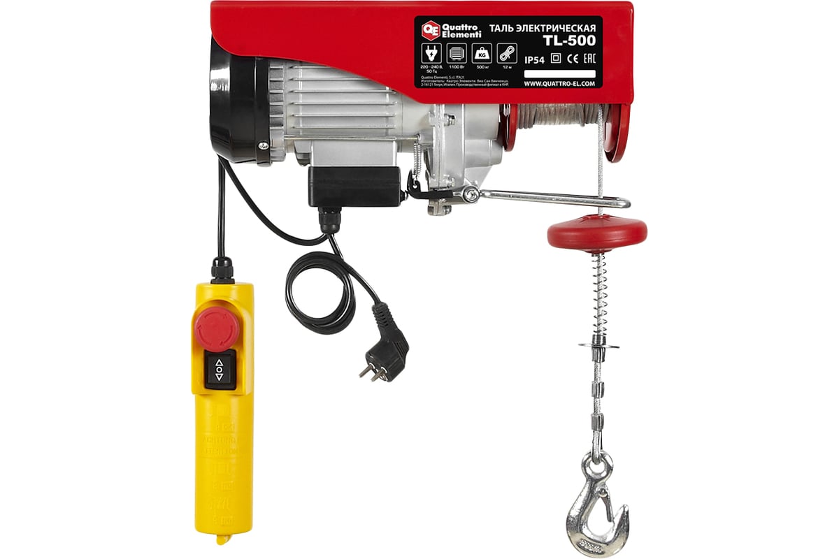 Электрическая таль QUATTRO ELEMENTI TL-500 1100 Вт, 250/500 кг, трос 12 м, блок полиспаст в компл. 793-695