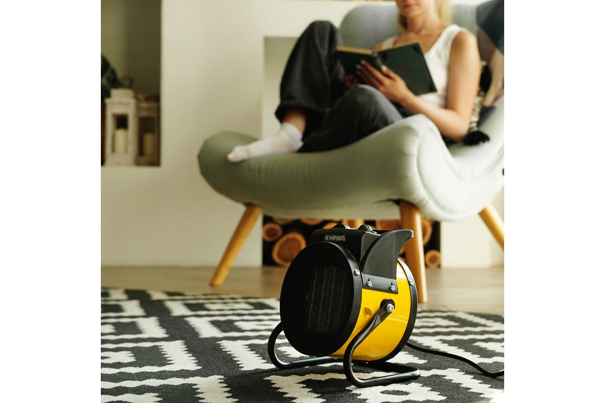 Электрическая пушка 2 кВт с весом 2,2 кг оснащена ручкой для транспортировки и прочным металлическим корпусом, устойчивым к ударам и случайным падениям.