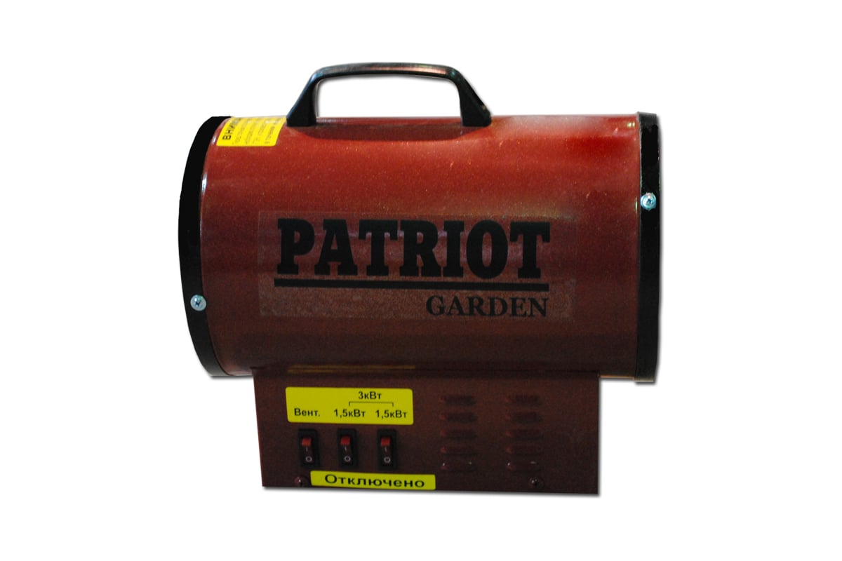 Электрическая тепловая пушка PATRIOT КВЭП-3 предназначена для обогрева и вентиляции производственных и подсобных помещений. В течение часа пушка спообна переработать 310 куб.м воздуха с разницей температур на входе и выходе в 30 градусов. Аппарат следует эксплуатировать в положении на полу при температуре от -10С до + 40С. При соблюдении всех правил использования тепловентилятор способен бесперебойно работать на протяжении 10 лет.