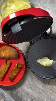 Отличная вафельница! Легко напекла много вафелек, степень зажарки можно выбрать, мне понравилось посильнее. Заливаешь тесто, остальное она делает сама. Печь одно удовольствие. В подарок положили конус для формирования вафель👍