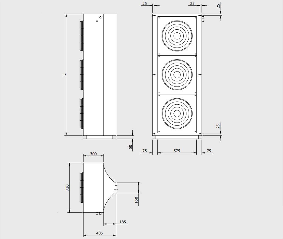 - Требуемый поток воздуха задается вручную, при открытии/закрытии ворот завеса включается/выключается автоматически.