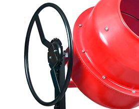 Ручной привод опрокидывания Ручное опрокидывание барабана осуществляется посредством удобного круглого рычага, что позволяет дозировано подавать готовый раствор. |