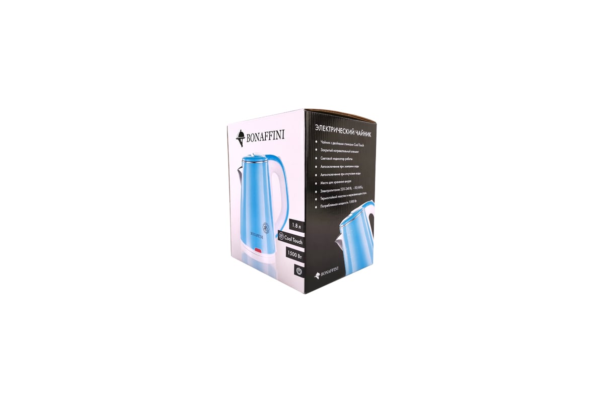 Электрический чайник BONAFFINI ELK-0002 1.8 л, 1500 Вт, дисковый, бирюзовый Чай1465 предназначен для использования в офисе или дома.
