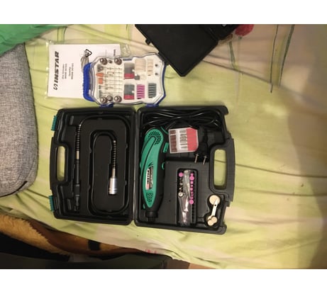 При небольших оборотах заметно не хватает мощности. Насадки/расходники из комплекта ужасны. В кейсе предусмотрено очень удобное место для гибкого вала, но вот сетевой шнур будет там путаться и болтаться как попало.
