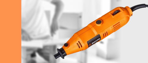 Электродвигатель передает вращение на рабочую насадку посредством вала. Максимальная частота вращения может достигать 34000 об./мин. Возможность блокировки шпинделя существенно упрощает замену оснастки. Достаточно кнопкой зафиксировать вал, чтобы легко открутить гайку.