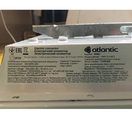 Отзывы об электрическом конвекторе ATLANTIC F119 1000W 500072