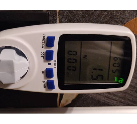 Конструкция ножек хлипковата. У меня висит на стене - конструкция крепления к стене тоже хлипковата. Т.е. сам он висит без проблем, но облокотиться нельзя. Версия на 1.5 отдает потребление 1.35 максимум. 0.68 примерно на мощности в половину. Странно, но у меня есть версия 2квт. Там потребление в норме (скрин с реле).