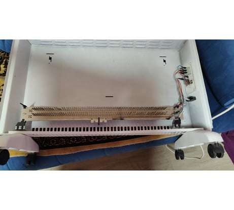 Думаю все понимают, что за 3600 глупо ожидать каких то там чудес, тем более, что именитые конвекторы такой мощности стоят в 2-2,3 раза дороже. Корпус собран хорошо, без щелей и других очевидных косяков. Металл тонкий, 0,45-0,5 мм. Поэтому при остывании потрескивает. Термостат простейший, биметаллическая пластина, как в утюге, при коммутации щёлкает. Из за дешевизны производитель не стал заморачиваться и экранировать термостат от потока горячего воздуха, но он нормально работает и так. Нагревательный элемент в количестве двух штук, установленных в один ряд, это старый, добрый стич (стежок). Представляющий собой голую нихромовую проволоку, вставленную зигзагами в керамический держатель. А это "выжигание кислорода" и прочее, прочее, прочее. При первом включении конвектор попахивал первые минут 30. Жарит так, что на стену вешать нужно действительно по рекомендации производителя, минимум в 20 см от стены. Если вешать на прилагаемые кронштейны, то нужно на стену за конвектором вешать кусок асбоцементного листа (плоского шифера). Об верхнюю часть корпуса можно обжечься, поэтому шторы, жалюзи, детей и т.д. нужно держать подальше. Данный конвектор следует покупать для обогрева бытовых, хозяйственных и производственных помещений. В спальню лучше взять что нибудь получше. Я брал для отопления подвала, сознательно, поэтому меня щелчки, потрескивания, сильный нагрев корпуса не беспокоят.
