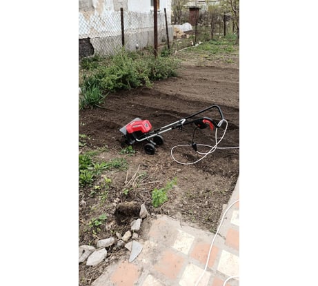 Только для лёгких почв. Нашу тяжёлую почву без нагрузки не берёт. Сварил крепление под блины от штанги, прикрутил к культиватору на болты и хомуты. С нагрузкой 20 кг рыхлит поошлогодние грядки на 10 см. Пробовал нагрузить 40 кг, электродвигатель не тянет. В первые полчаса наехал на провод, провод оборвало, ремонтировал удлинитель. Покупали родители в апреле 2022 года вместе с бензиновым генератором - на даче нет столбов электросетей ближе 300 м. Редуктор очень греется на нашей тяжёлой почве. Купил высокотемпературную смазку с молибденом в тубе, снял фрезу, выкрутил пробку и вылил оттуда масло. Напихал в редуктор новой смазки. Несколько раз после прогрева редуктора в работе добавлял смазку. Колёсики декоративные, чтобы катить культиватор мне нужно пригибаться, поэтому ношу его на руках. Колёсики крепятся к культиватору на стойке, к этой же стойке крепится сошник. Сошник короткий, наварил на него пластину 20 см длиной. Крепление стойки с колёсиками и сошником хлипкое, разболталось в первые часы работы и стойка болталась вверх вниз. Приварил усиленные шайбы к креплению. Ручка культиватора не регулируется по высоте. Приходится культиватор отклонять назад. Для людей с ростом 2м30см думаю будет в самый раз. Или у кого руки реально до колен. В работе культиватор прыгает и вырывается из рук. С моим несросшимся переломом запястья и огромными ручищами не вырвался ни разу, даже когда держу одной рукой при включении. Пробовал рыхлить и от себя, и на себя, и боком одной фрезой. С бензиновым культиватором 80 кг весом не сравнить. На себя рыхлит лучше. Весной этого 2025 года наняли бензиновый мотоблок с плугом и он нам вспахал дачу. Комья и пласты от плуга разрыхлил этим элктрокультиватором без нагрузки, но всё время боком. В итоге приняли решение продать электрокультиватор.