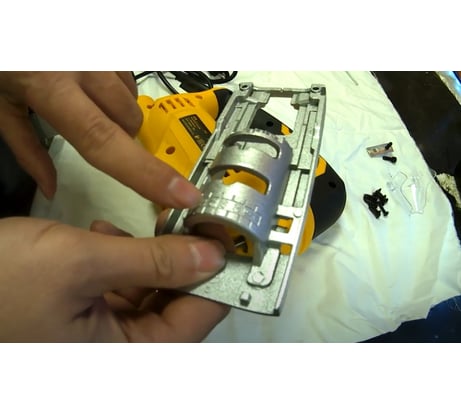 Дошли руки написать и так: Касательно конструктивных особенностей корпуса: Твердый качественный пластик, прорезиненная рукоять. Отсутствие заусенцев на материале. Кабель 3-х метровый, добротный материал провода. У некоторых производителей кабель сделан из жесткой резины, которая со временем становится ломкой при использовании на холоде, либо от жары. В данной модели такого не наблюдается, обмотка мягкая, эластичная. Длина провода позволяет удобно работать с длинными заготовками. Регулировка скорости вращения и кнопка включения подсветки сверху. Быстрозажимной патрон для установки пилки. На шнуре посадочное место для ключа. Удобное отверстие для подключения пылесоса, а также переходник (есть возможность подключения как к строительному пылесосу, так и домашнему под более узкую трубку. Это поможет вам, например, при работе на балконе или в квартире). Слева на корпусе переключатель обдува (т.е. стружка будет лететь в сопло под вытяжку, либо вперед сдуваю стружку). Справа регулировка маятникового хода (4 положения). Спереди щиток из прозрачного пластика с фиксацией при откидывании. Внизу на двух болтах держится регулировка наклона подошвы основания от 0 до 45 градусов. Касательно конструктивных особенностей двигателя и внутренностей: Качественная сборка внутри ничего лишнего, все просто, но добротно. Порадовали металлические шестерни внутри корпуса, которых в предыдущем моем инструменте не было. Ротор залитый, что плюс, материал обмотки на вид медь (не царапал, не знаю). На самом корпусе внутри в районе движущихся частей металлические вставки, которые предотвратят прикасание к пластиковому корпусу. Обильно смазан внутри. Минимальное количество пластиковых деталей и то это в основном кнопки и реле. Работа с инструментом: Отличный прямолинейный рез, что сразу подразумевает под собой: хорошо выставлена подошва, хватает мощности инструмента, пилочка стоит в лобзике ровно, наличие маятникового хода. Хорошо показал себя при распиле деревянных заготовок, а также алюминиевой трубы с сечением 3мм (единственное обращу внимание, что так как длина пилки позволяет совершать пропил до 12мм, трубу пришлось крутить, на качество реза при должной сноровке не повлияло). Попробовал также для интереса пропилить плитку использую вольфрамовое полотно от ножовки вместо пилочки (просто обрезаешь его и вставляешь как пилочку), также без нареканий. При пробе фигурного реза на дсп никаких нареканий. Удивлен, но родные пилки неплохо показали себя ))) Понятно, что в любом случае покупать нужно, но если захотите попилить не докупая ничего, то велком, вполне себе. Пара подсказок: Плавных ход на минимум – для чистового реза, на максимум – для распила. Затупилась пилка – не беда, подложи подкладку под подошву, чтобы пилить ближе к краю лезвия, где оно меньше соприкасалось с деревом. Для любителей чистого реза – любой лобзик не создан для этого, подбирайте правильно инструмент для работы!!! Но если вам прям надо-надо: 1. Подложи перед началом пиления и на выходе лезвия из заготовки кусок ненужного материала, чтобы избежать динамического удара и разрыва краев у заготовки. 2. Выбрать какая из двух сторон будет лицевой (в зависимости от направления заточки лезвий будет разрывать низ или верх). 3. На лицевой стороне сделать прорез ножом для минимизации сколов при пиле