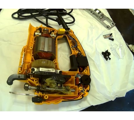 - Металлические части внутри корпуса!!! - Хороший рез как при фигурной резке, так и прямолинейный. - Запасные щетки!!! Не так часто можно встретить, чтобы производитель поставлял в комплекте таковые, приятный бонус; - Кабель длинный и качественный (поверьте мне это очень немаловажно); - Корпус. Хороший пластик без заусенцев.