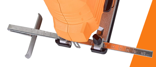 Электрический лобзик работает от сети и оснащен надежным мотором с воздушным охлаждением, вентилирование обеспечивается через специальные отверстия в корпусе. Выключатель имеет защиту от случайного запуска двигателя. Инструмент может работать с пилками разных параметров, оснастка легко меняется благодаря наличию быстрозажимного крепления. Глубина реза для дерева составляет 100 мм, для металла – 10 мм. Скорость пиления можно выбирать самостоятельно в зависимости от вида обрабатываемого материала. Наличие маятникового хода позволяет устройству легко справляться с выполнением грубых резов. Модель оснащена боковым ограничителем, который направляет шток параллельно базовой кромке. Угол наклона подошвы можно регулировать, что дает возможность пилить под углом. Лобзик имеет лазерный указатель, который облегчает выполнение прямого реза. Наличие подсветки обеспечивает комфортность работы в условиях плохой освещенности. Для поддержания чистоты во время работы к устройству можно подключить пылесос.