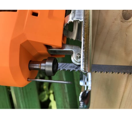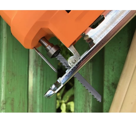 Лезвие меняется легко, без ключей. Угол наклона регулируется, можно пилить под углом. Мощности хватает, чтобы пилить толстые доски. Лобзик легкий, удобно держать в руках.