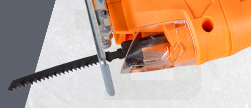 За счет скобовидной прорезиненной рукояти лобзик удобно удерживать в руке. Для того чтобы не нужно было все время жать на кнопку включения при выполнении длинных пропилов, предусмотрен специальный фиксатор. К встроенному в корпус патрубку можно подсоединить пылесос или пылесборник – рабочая зона будет оставаться чистой.
