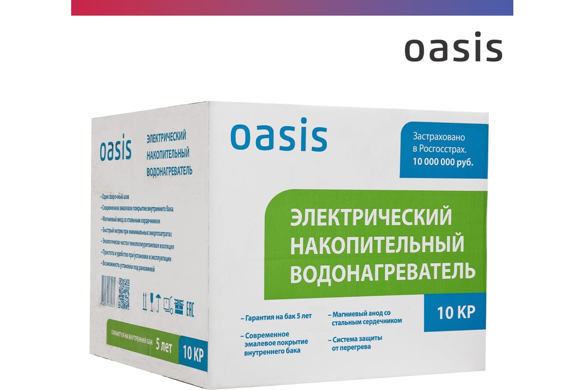 Электрический накопительный водонагреватель Oasis 10 KP используется для нагрева воды. Благодаря компактным размерам и верхнему подключению устройство без проблем устанавливается под раковиной.