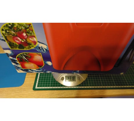 Покупали опрыскиватель Aqua Work KF-12C-3 24708 на 12 литров. Опрыскиватель толковый, серьезный, сделан добротно. Полный вес комплекта с коробкой 4,3 кг, а вес самого распылителя, подготовленного к работе, 3,6 кг. Аналогичные опрыскиватели весят на 1,0-1,5 кг больше. Аккумулятор литиевый на 8 А/ч, большой. Литиевые аккумуляторы легче свинцовых, у них предусмотрена защита от глубокого разряда и перезаряда, есть еще важный момент. Опрыскивателем пользуемся полгода, полгода он ждет своего часа. В этот период свинцовые аккумуляторы, по-хорошему, надо 2-3 раза подзарядить, иначе прослужат они не долго. Для литиевых аккумуляторов это не критично. Аккумулятор у опрыскивателя мощный, время полного заряда составляет порядка 8 часов. В этом нет ни чего страшного. Одной зарядки хватает, чтобы опустошить несколько полных баков. В нашем случае у нас редко есть необходимость в распылении больше двух заправок. Получается одного заряда аккумулятора хватает почти на месяц. Литиевый аккумулятор можно не подзаряжать, у него нет «эффекта памяти». Полностью разряженный аккумулятор, после 30 минутной зарядки спокойно расходует полный бак. Еще большой плюс, жидкость расходует он полностью, в баке остается примерно 50 грамм воды, не больше. При желании можно залить и 0,5л жидкости и он ее полностью выработает. Насос мощный, создает давление 6Bar, производительность 3,6л/мин, это его максимальные характеристики. Порог отключения помпы выставлен на 5 Bar. Производительность без насадок и штанги 2,9л/мин, с лейкой 2,1л/мин, с двойной и щелевой форсункой 1,7л/мин, с круговой форсункой 1,5л/мин. Это на максимальной мощности, при минимальной мощности производительность в три раза меньше. Распыление струи хорошее, да не ТУМАН, но ПЫЛЬ, у ручных опрыскивателей такого не добиться. На минимальной мощности эффект как у ручного при среднем уровне накаченного давления. Площадь факела распыления в разы больше, даже при минимальной мощности. Подбирали опрыскиватель поменьше на 5-6 литров, но они либо дорогие, либо слишком простенькие. Помпа слабей, емкость аккумуляторов маленькая. Для небольших участков вполне приемлемый вариант, но с этим все же получается быстрей и легче. Зимой храним в теплом помещение, литиевые аккумуляторы боятся низких температур, это их слабое место. Что касается недостатков, критичные не проявились, а по мелочам, они типичны для большинства опрыскивателей. Но у этого таких недостатков меньше. На фото размеры вес и прочие интересные моменты.