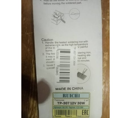 Вопросы и ответы о паяльнике RUICHI TP-307 12 В, 30 Вт 81170
