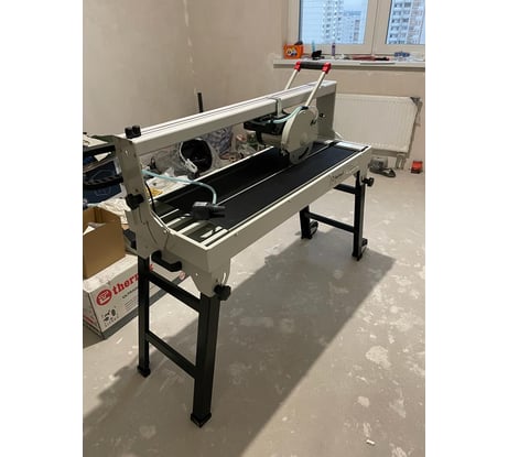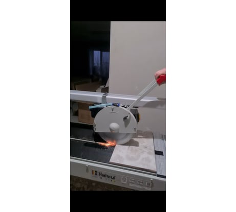 Пил данным плиткорезом керамогранит 900х45. Предполагается что перед резом нужно сделать лёгкий поверхностный надпил по глазури а потом уже делать распил полностью утопив диск. Но прелесть в том что механизм поднятия и опускания диска настолько убого сделан , что при поднятии диска он смещается относительно линии реза около 4 мм и это никак не исправить, разве что полностью выточить и переделать все шарниры этого механизма. Поэтому опускаю диск вниз и пилю как есть , но получаю сколы на керамограните. Насос подачи воды постоянно при начале работы приходится подталкивать чтобы запустить его иначе он просто гудит и стоит на месте.Диск поменян, купил диск к нему за 3800р, родным даже пробовать не стал резать.Ручной плиткорез в разы чище делает рез.Редкая дрянь, не советую его покупать