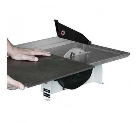 Недорогой станок для любительского использования. После покупки сразу доработал: промазал силиконовым герметиком щели в корпусе, где находится вся электрика, обработал водооттаккивающим спреем. Отрегулировал положение двигателя и заднего упора. Поддон для воды нужно ставить не вдоль пилы, как нарисовано, а поперёк.Так легче наливать воду и вынимать поддон после работы. Штатный диск пилит вполне приемлемо, не идеально, но работать можно. Мотор имеет гладкий корпус, без рёбер охлаждения, нагревается быстро, в течение 1 распила, затем нужно подождать хотя бы минуту. Выбросил заднюю стенку, чтобы улучшить охлаждение двигателя. Запах горелой изоляции исчез.