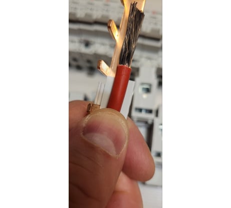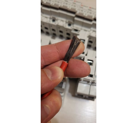 Кабель оказался очень жесткий, медные жилы все черного цвета, медь покрылась оксидом. Такой кабель использовать нельзя, монтаж сорвался, теперь придется выкручиваться, искать кабель в другом месте. Причем выбора синего цвета особо и не было, всего 1 позиция 10 мм кв.