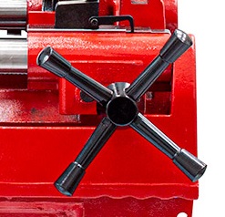 Удобство в работе Маховик подачи каретки имеет крупные наконечники, которые исключают соскальзывание руки оператора при работе. |