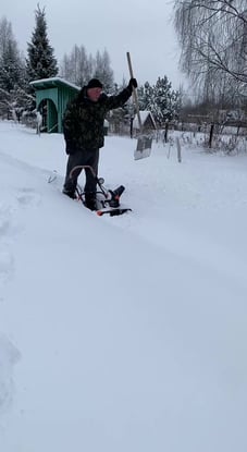 Итак после снегопадов и перепадов температур можно сделать достаточно объективные выводы. Снег убирает. Высоту в 20-25 сантиметров рыхлого снега берет легко и играючи, кидает далеко и куда тебе надо, выброс регулируется легко во время работы, фара хорошее подспорье. Также из плюсов металлический шнек - хреначит все подряд не напрягаясь. Ручка удобная. Теперь к не очень приятным впечатлениям. Если снега меньше 5 см то он летит куда угодно, даже скорее он летит на убирающего, но только не туда куда вы хотите. Если слой снега 30 см и больше аппарат работает но конкретно подсаживается, это слышно по звуку моторчика, даже когда убирал снег в щадящим режиме и в половину ковша. 15-20 метров и аппарат вырубается - срабатывает защита. Ожидание в 2-3 минуты и снова можно работать. Не смертельно, но не приятно. Особенно не оставляет мысль что это предел и сильнее нагрузку давать точно не стоит. Т.е. что мы имеем в сухом остатке нормально можно убирать не гробя аппарат и себя легкий снег глубиной от 5 до 25 см., вроде не плохо, но вы попробуйте это выловить в снегопад когда вы весь день на работе. И второй минус это колеса. Это просто жесть - оторвать и выкинуть. Их идиотский размер делает их самой бесполезной вещью. В итоге аппарат жизнь реально облегчил, но если бы была бы возможность взял бы с мотором помощнее, следующий в линейке. Короче вещь хорошая но уж больно нежная, требует аккуратного отношения, поэтому ее эксплуатацию не доверяю в семье никому из опасения что запорят. Да претензий к качеству сборки и материалов у меня нет, все сделано аккуратно и на совесть.