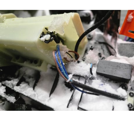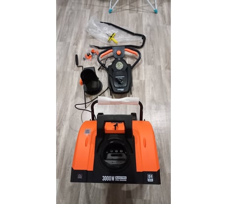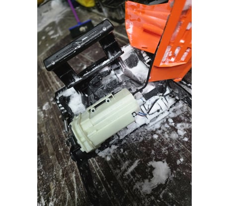 Если предполагаемое время работы снегоуборщика небольшое, то можно его использовать без доработок. Только укрепить хомутами места соединения труб, иначе барашки долго не выдержат. Ровную поверхность (у меня брусчатка) чистит идеально за счёт обрезиненного шнека. Если снег высокий и сухой- отбрасывает на 8-10 метров. Низкий, мокрый и залежалый снег на 3-6 метров. Для уборки парковки и дорожек на даче этого предостаточно. Попробовал поставить лыжи, как некоторые советуют, но вернул колёса. На ровной поверхности колёса удобнее, маневрировать можно одной рукой. Теперь о главном. У меня примерно 400 м.кв. для чистки от снега. Купил данный аппарат и как раз выпало много снега, высотой 25-30 см. Всё шло отлично, чистит идеально, аппарат лёгкий и мощный, пока через часа полтора не завоняло изоляцией. Перед покупкой читал отзывы и знал о проблеме вентиляции двигателя в данной модели. Разобрал корпус. Внутри всё забито снегом. В этом снегу очень горячий двигатель. Корпус двигателя открытого типа, снег залетает внутрь статора и тает. Ротор крутится почти в воде. А воздух для охлаждения в двигатель не попадает из-за набившегося вокруг него снега. Весь этот инженерный трэш из-за грубой конструкторской ошибки: крыльчатка на валу двигателя выбрасывает горячий воздух наружу, образовавшийся вакуум затягивает холодный воздух через вентиляционные прорези внизу корпуса и через щели между корпусными деталями. Но внизу при уборке снега образуется снежная взвесь, и она засасывается внутрь, постепенно забивая всё пространство. Рассматривал разные решения. Самая эффективная вентиляция получилась при засосе воздуха через выносной шланг от пылесоса. Одного шланга по сечению оказалось мало. Поставил два. Через резиновые сантехнические переходники. Чтобы вообще избежать засоса снега в шланги использовал в качестве фильтра распред.коробку, в крышке которой вырезал прямоугольник и вклеил сетку. Установил под "торпедо". Пришлось удлинить с помощью стальной трубки ручку управления поворотным выбросом. Но так оказалось даже удобнее - не надо нагибаться и на ощупь искать её где-то внизу. Большие щели между корпусными деталями заклеил ремонтной лентой. Нижние вент.прорези заделал. Все комплектующие купил на Озоне. Примерный бюджет доработки 3 тыс.руб. Итог: Двигатель не перегревается, снега внутри нет, работает идеально. Извините за много букв, но может кому поможет мой опыт.