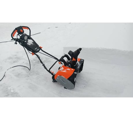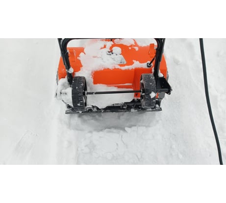 Итак после снегопадов и перепадов температур можно сделать достаточно объективные выводы. Снег убирает. Высоту в 20-25 сантиметров рыхлого снега берет легко и играючи, кидает далеко и куда тебе надо, выброс регулируется легко во время работы, фара хорошее подспорье. Также из плюсов металлический шнек - хреначит все подряд не напрягаясь. Ручка удобная. Теперь к не очень приятным впечатлениям. Если снега меньше 5 см то он летит куда угодно, даже скорее он летит на убирающего, но только не туда куда вы хотите. Если слой снега 30 см и больше аппарат работает но конкретно подсаживается, это слышно по звуку моторчика, даже когда убирал снег в щадящим режиме и в половину ковша. 15-20 метров и аппарат вырубается - срабатывает защита. Ожидание в 2-3 минуты и снова можно работать. Не смертельно, но не приятно. Особенно не оставляет мысль что это предел и сильнее нагрузку давать точно не стоит. Т.е. что мы имеем в сухом остатке нормально можно убирать не гробя аппарат и себя легкий снег глубиной от 5 до 25 см., вроде не плохо, но вы попробуйте это выловить в снегопад когда вы весь день на работе. И второй минус это колеса. Это просто жесть - оторвать и выкинуть. Их идиотский размер делает их самой бесполезной вещью. В итоге аппарат жизнь реально облегчил, но если бы была бы возможность взял бы с мотором помощнее, следующий в линейке. Короче вещь хорошая но уж больно нежная, требует аккуратного отношения, поэтому ее эксплуатацию не доверяю в семье никому из опасения что запорят. Да претензий к качеству сборки и материалов у меня нет, все сделано аккуратно и на совесть.