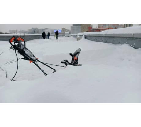 Чистил снег на следующий день после обильного снегопада в середине декабря. Подмосковье. Снеговой покров 20-25 см, в перемётах до 40 см. У меня газон и не везде ровный, плитки мало. Чистил 4 часа (парковка, площадка перед домом, дорожки). Снегоуборщик справился. Достоинства и недостатки указаны выше. Снег кидает на 5-7 метров, нормально. Перекидывал через 2-метровый забор. После покупки снимите левую серую крышку (три самореза) и проверьте как установлены ремни, чтобы не было проблем. В Руководстве не указаны параметры удлинителя. Электросистема снегоуборщика двухпроводная, мощность 3квт. При длине провода удлинителя 40-50м необходимо использовать гибкий кабель 2х2,5 мм.кв.для зимней эксплуатации с влагозащищёнными вилкой и розеткой. Я использую типа КГ в резиновой изоляции. При этом кабель от газонокосилки, а также другие в ПВХ изоляции (красные, синие, белые), например ПВС, которые используются летом, использовать нельзя, т.к. они дубеют на морозе, могут потрескаться со всеми вытекающими. Потребляемый снегоуборщиком ток около 13,5А. Обычная розетка рассчитана на 16А, т.е. она выдержит. Выдержит ли проводка - Да, если штатной проводкой дома к розетке питание подведено кабелем 2,5 мм.кв. В Руководстве по эксплуатации нет никаких указаний по защите сети. Электропитание снегоуборщика выполнено по двухпроводной схеме (нет провода защитного заземления), значит необходимо устанавливать двухполюсное УЗО 30мА 25-40А, а также автоматический выключатель на 16А. В Руководстве есть хорошая рекомендация обрабатывать внутренние поверхности ковша и трубы выброса силиконовым спреем. Проверил, работает, снег меньше налипает. Перед чисткой снега рекомендую положить в карман небольшую щетку и периодически проверять и очищать вентиляционные отверстия в нижней части корпуса. Если они забьются снег через щели будет заполнять отсек двигателя. По окончании чистки снега откройте правую серую крышку (три самореза) и загляните внутрь. Если снег есть, то его необходимо убрать, иначе при хранении при комнатной температуре (указано в Руководстве) он растает и вода не добавит здоровья двигателю. В целом снегоуборщиком доволен. Но необходимы небольшие доработки.