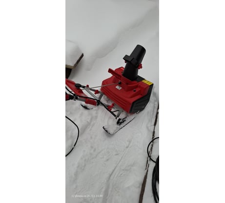 Фото/видео не получилось. А так аппарат мне понравился: пашет стабильно, закидывает снег на кучу выше уровня плеч, берет и свежий, и уплотнившийся снег. Грубо вверх на 2.5 метра, в сторону метра на 3-3.5. Легок в перемещении (15 кг, удобная ручка), складывается. Пашет без проблем от достаточно длинного и слабого провода (какой был).