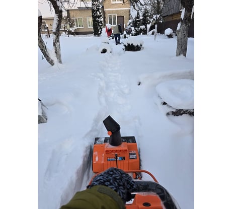 - Дальность выброса – 5 м Вы можете отбрасывать снегза пределы участка, настраиваяповорот желоба