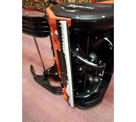 Устройство поворота дефлектора выброса снега состоит из 2-х метал трубок, одна в другую отказывала входить, пришлось сточить краску и подработать надфилем на второй трубку внутренний задир, чтобы вошла одна в другую. № минуты и проблема была решена.