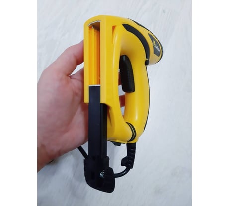 Сил затрачивается гораздо меньше, чем при работе ручным степлером. Не удобно контролировать расстояние пристрела.