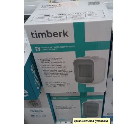 Не знал, как выглядит упаковка, на сайте ВИ нет фото упаковки, в которой поставляется тепловентилятор TIMBERK. Товар отмечен как «оригинальные товары», только вот упаковка оказалась не оригинальная. Привезли в ПВЗ ВИ через неделю в простой упаковочной коробке из гофрокартона, с двух сторон имеется одинаковая наклейка с указанием на изделие. Такая упаковка показалась мне подозрительной. Потом в торговом центре увидел в продаже такой же TIMBERK T-FH1500-H11MC, но в оригинальной коробке, в бело-зеленом оформлении, дата изготовления тоже указана 06.2023г. Уже дома при внимательном осмотре заметил, что на проводе есть следы загрязнения, т.е. данный экземпляр находился вне коробки, возможно, это витринный образец. Видимо потеряли оригинальную коробку и упаковали в обычный картон. По правилам такой товар подлежит уценке, т.к. в комплектации отсутствует оригинальная упаковочная коробка. А так получается подмена, обман. От бренда TIMBERK (Швеция) осталось лишь название, да ещё упоминание на оригинальной коробке Designed by Timberk Group, а по факту чисто китайское изделие, вроде SCARLETT с таким же качеством пластика, даже изготовитель у них один и тот же – Home Electronics Limited. На оригинальной упаковке написано, что регулируемый воздушный поток. Интересно, каким образом он регулируется, если только 2 ручки управления: термостат и переключатель режимов, а скорость вращения вентилятора не регулируется. Видимо такая идея была задумана только в Шведской разработке! В комплекте паспорт на трех языках: EN, RU, KZ. На наклейке сбоку тепловентилятора указана дата изготовления 06.2023г. Несмотря на критические замечания, тепловентилятор TIMBERK T-FH1500-H11MC оказался очень даже хорош. Рекомендую к покупке. С учётом сегодняшней цены 1000р ничего лучшего за эту цену не найдёте. У нег привлекательный внешний вид, компактный, достаточно мощный, пластик не вонючий. Малошумный, быстро разогревается, даже в режиме 900 Вт выдает хороший результат. Примечательно, что в режиме 900 Вт теплый воздух выходит по всей площади нагревательного элемента, а не вполовину, как у других подобных устройств в режиме 750 Вт. Если принюхиваться вблизи решетки, то всё же небольшой запах изнутри присутствует, возможно пока ещё новый нагревательный элемент. При включении режима без нагрева, выдает воздушный поток слабовато, как и все подобные с керамическим нагревателем, т.е. использовать в качестве вентилятора не имеет смысла, разве что поставить в 1метре от себя, да и то мало толку. При прикосновении к корпусу, чувствуется небольшая вибрация от работающего вентилятора. Противоскользящих, антивибрационных опор нет, снизу по кругу есть небольшие выступы, как на подставке электрочайника. Можно приклеить самоклеящиеся силиконовые накладки толщиной 1,6-2мм рядом с выступами и проблема будет решена. Опыт использования данного тепловентилятора почти нулевой, т.к. сейчас нет необходимости в обогреве помещения. Первые впечатления хорошие. Увидим, как себя покажет в дальнейшем.