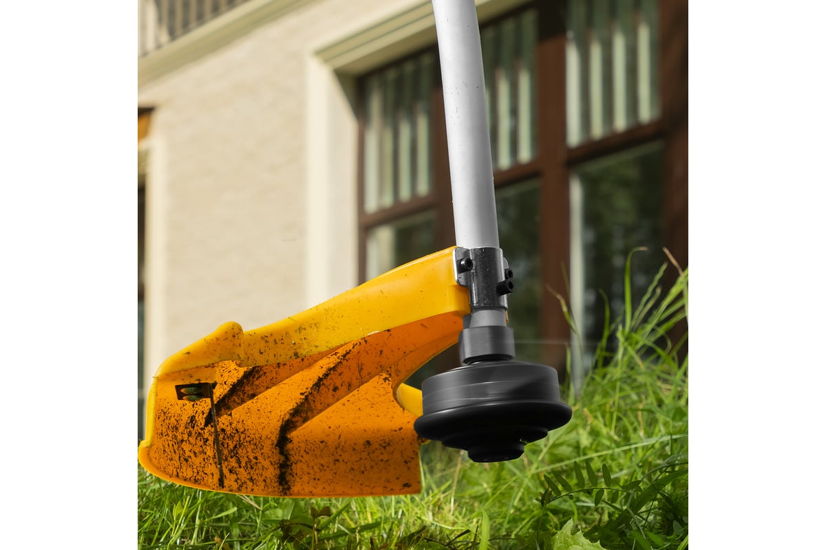 Мощный двигатель на 1100 Вт обеспечивает вращение катушки на триммере со скоростью 6500 об/мин.