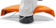 Поворотная косильная головка делает кошение возможным в труднодоступных местах.