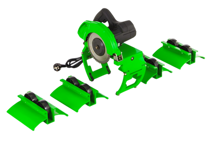 Рама выполнена из профильной трубы с порошковым зеленым покрытием. На ней предусмотрены: ручной винтовой зажим для фиксации трубы по высоте; эргономичная рукоять-рычаг для плавного опускания пилы без ударов; регулируемые опорные ножки с резиновыми накладками для устойчивости на любой поверхности.