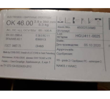 Отзывы об электроде ОК 46.00 (2.5 мм; 5.3 кг) ESAB 4600253AM0